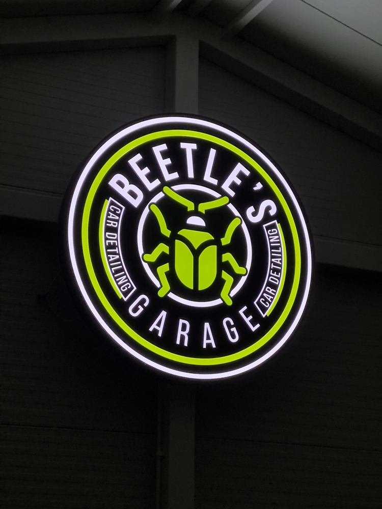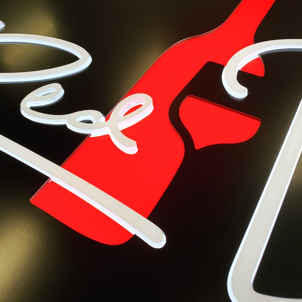 Bei einem Produkt dieser Art werden LED-Module verwendet, um das Plexiglas in den gefrästen Öffnungen zu beleuchten. In der Leuchtwerbung dieser Art wird nur ein Teil der Frontfläche beleuchtet, nicht die gesamte Fläche.